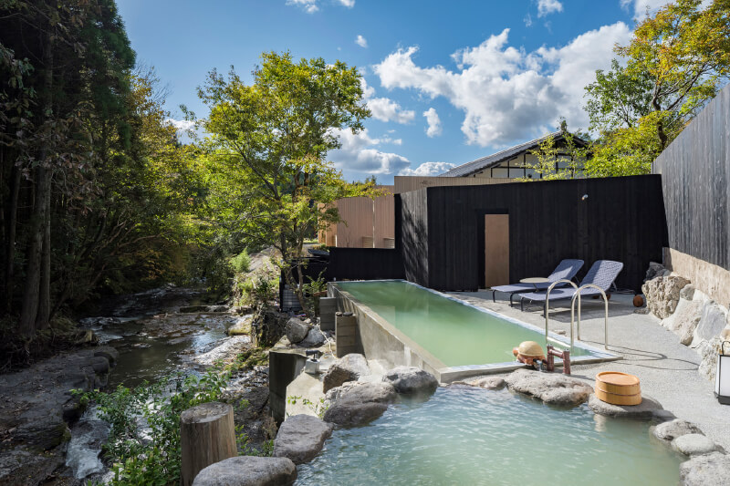 客室露天風呂や温泉水プール付き