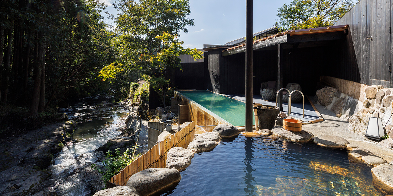 温泉水プール付き貸切露天風呂、貸切川縁露天風呂、